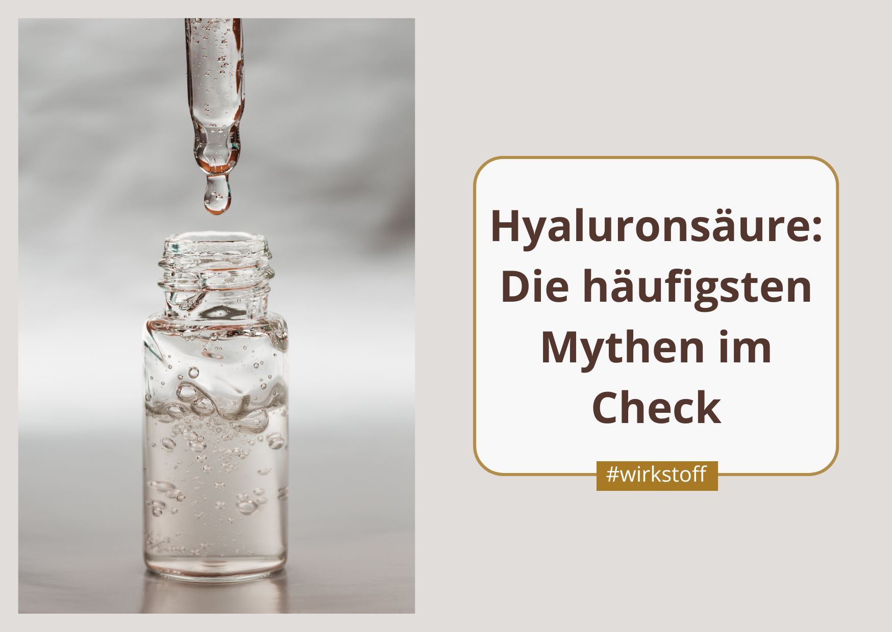 Flasche mit Hyaluronsäure neben Titeltext